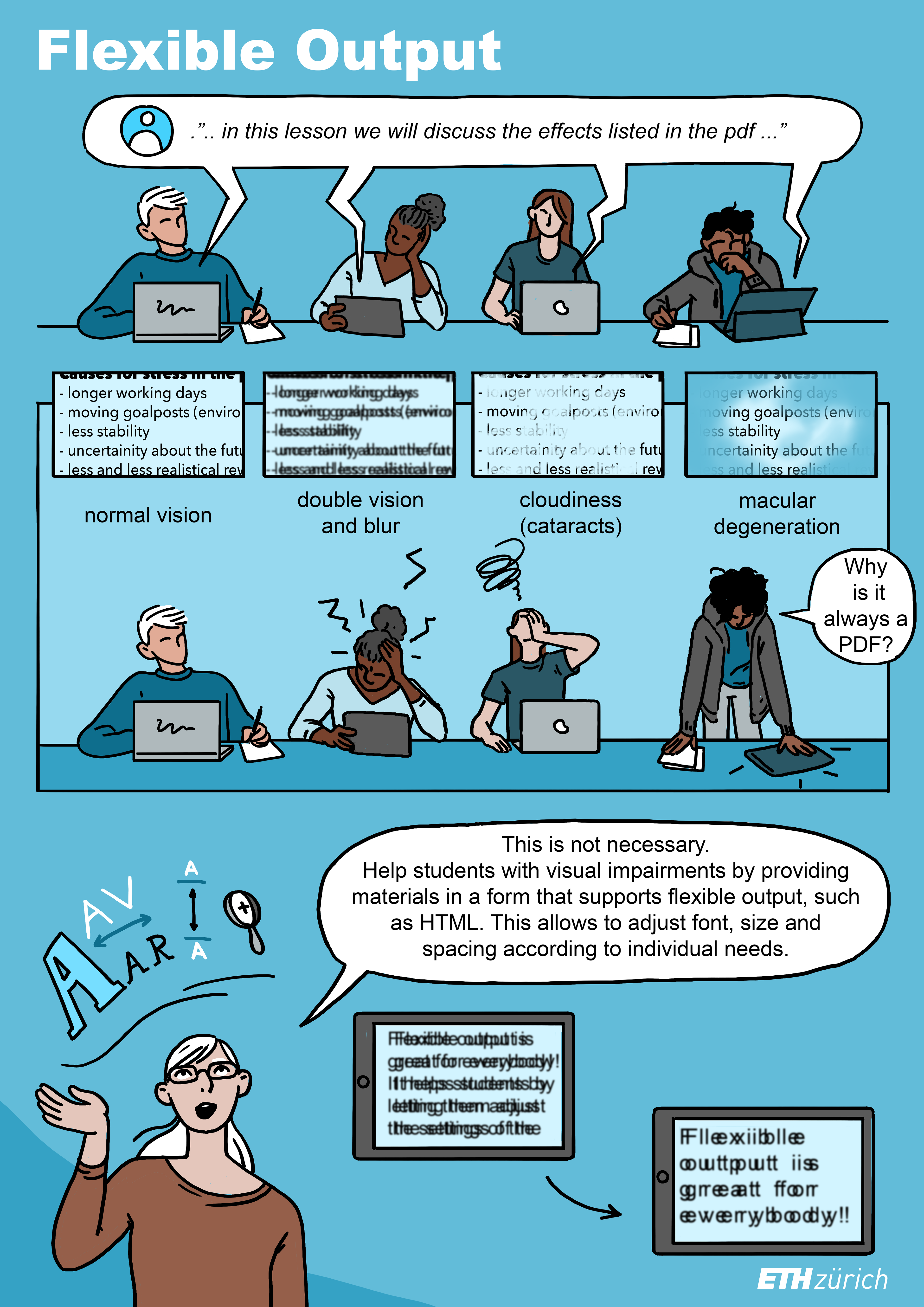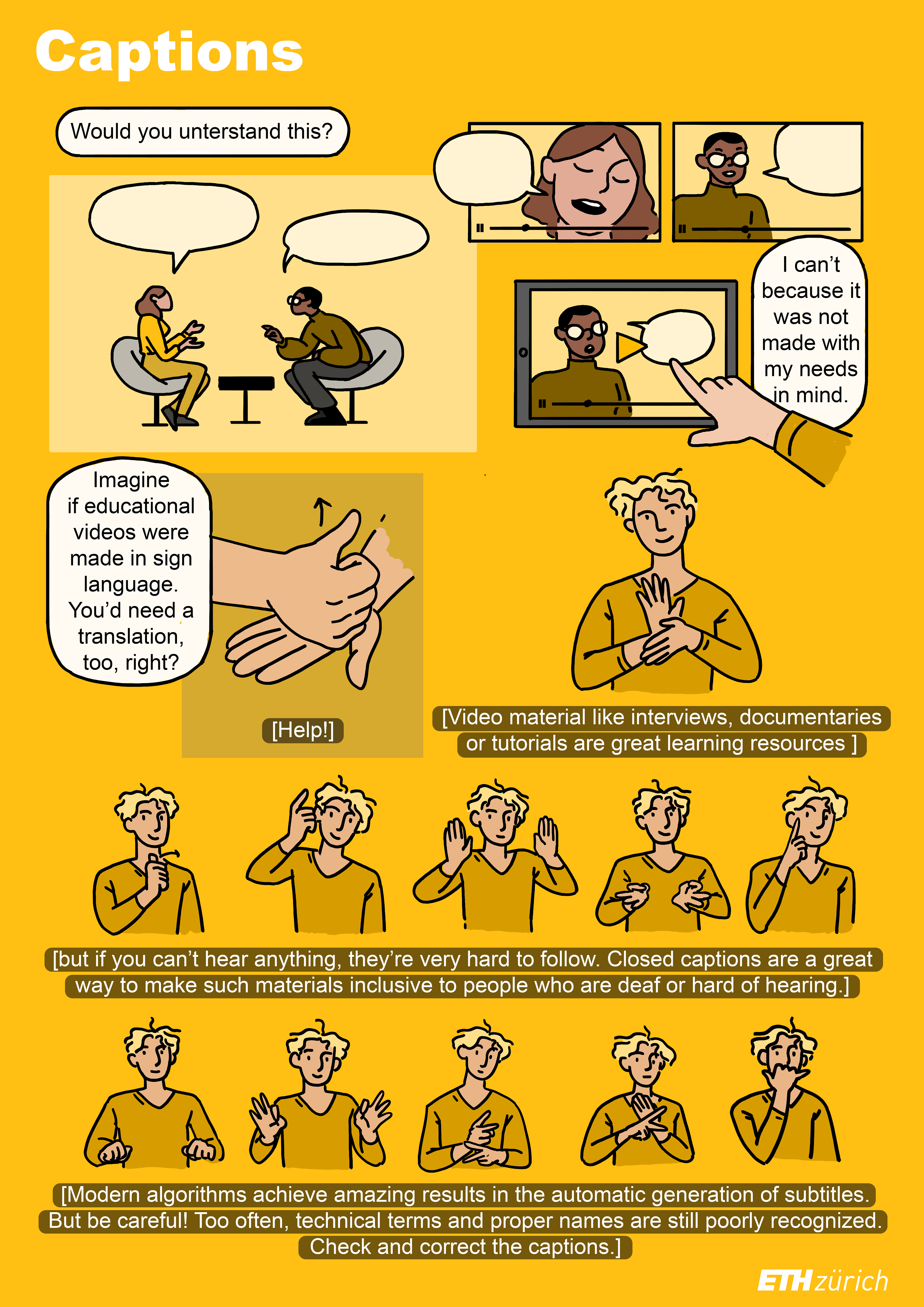 comics explaining different ways for professors to make their lectures and material more disability friendly